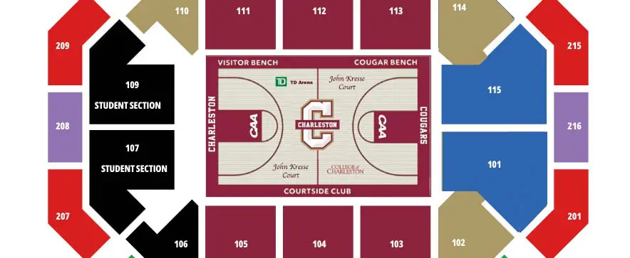 The Charleston Athletic Fund offers premium reserved parking near TD Arena for all home men's basketball games. This parking is a benefit for those members who give at the Golden Cougar level and above ($3,600+). Please refer to the map below to find your assigned lot.